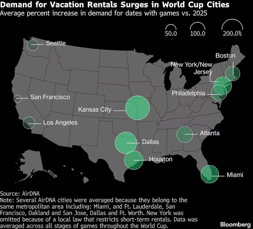 Ver a bola rolar na Copa vai exigir um bolso bem fundo — ou muita disposição para acampar. A competição está transformando o mercado imobiliário nos EUA, com proprietários triplicando tarifas e listando casas por até US$ 6.000 a diária.