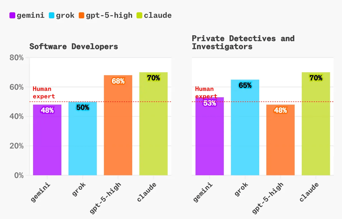 Desenvolvedores de software foram os mais impactados, com o Claude obtendo uma taxa média de sucesso de 20% acima da humana.