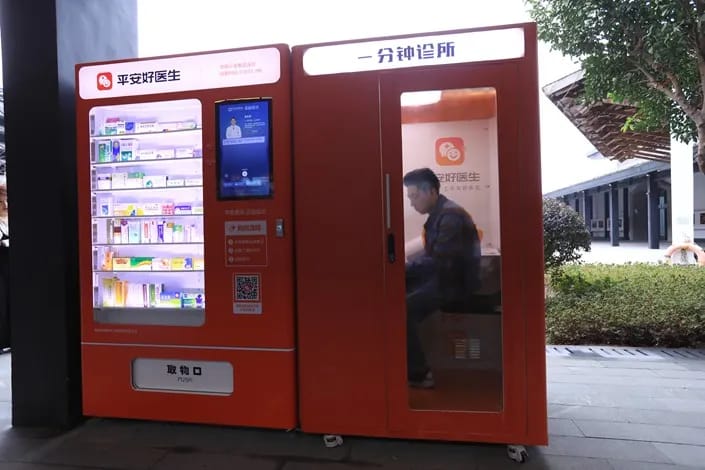 Uma cabine de call diferente. Na China, a empresa Ping An Good Doctor está instalando cabines que funcionam oferecendo consultas, diagnósticos e medicamentos — tudo feito por AI.