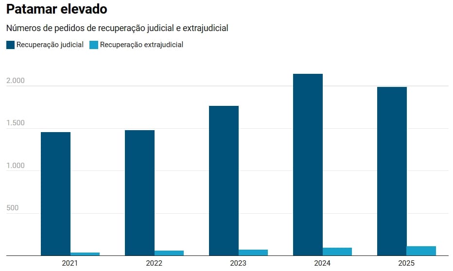 A situação preocupa economistas, uma vez que, se os juros continuarem altos por muito tempo, o risco é de uma onda ainda maior de reestruturações e recuperações judiciais no país.