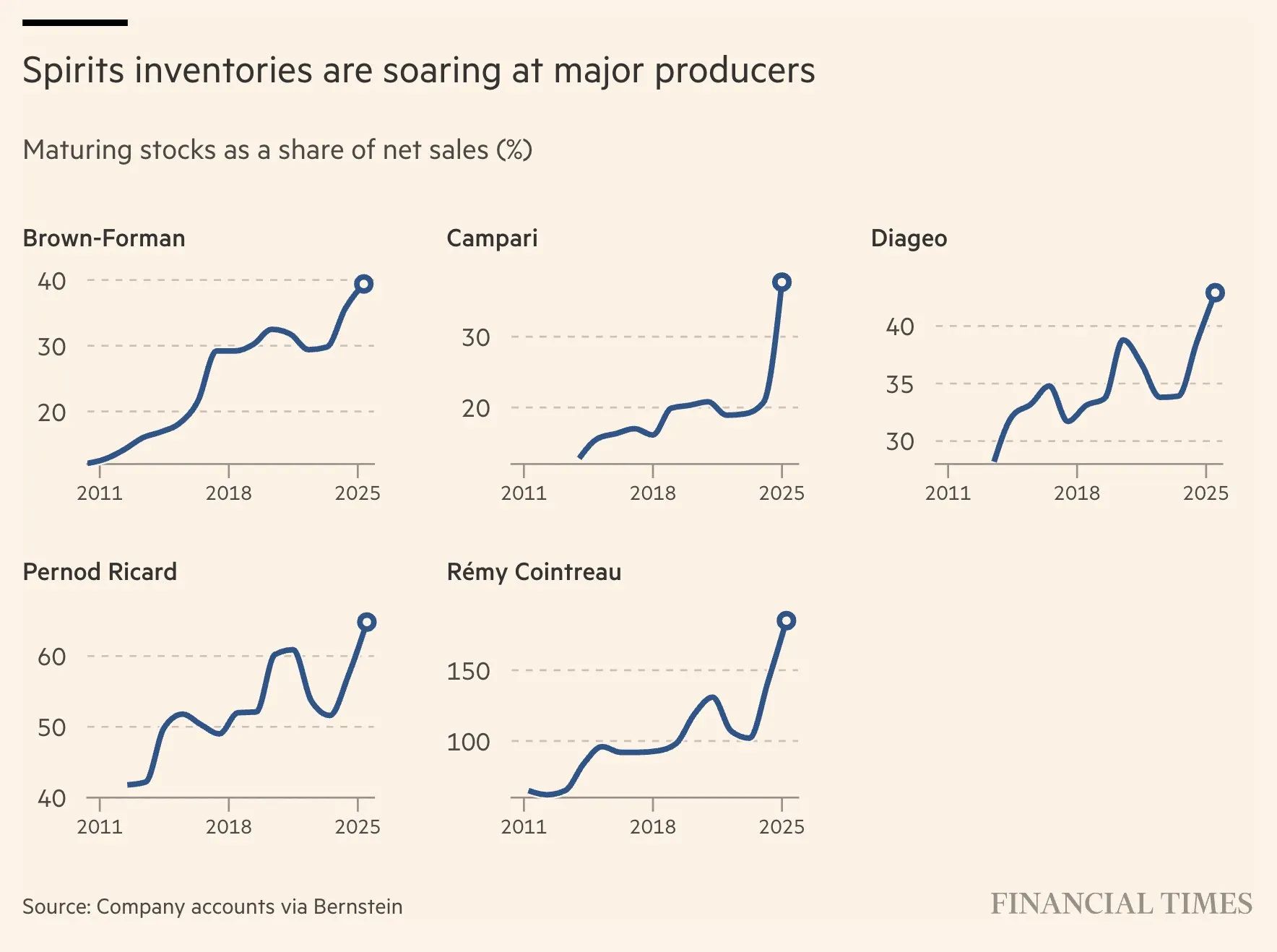 No caso extremo da Rémy Cointreau, o estoque envelhecido já equivale a quase o dobro da receita anual da empresa — e quase toda sua capitalização de mercado.