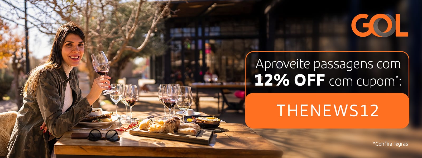 *Aplicação de cupom para vendas de passagens na Argentina. Código: THENEWS12 Desconto: 12% em voos operados pela GOL, com origem ou destino na Argentina. Validade do cupom: de 16/10/2025 a 30/11/2025, ou até atingir 100 transações, o que ocorrer primeiro. Período de voo: de 16/10/2025 a 30/06/2026, exceto entre 15/12/2025 e 31/01/2026 e de 11/02/2026 a 20/02/2026. Canais de venda: Site e Aplicativo GOL.