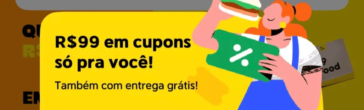 Você abre o app que já usa no dia a dia (o app da 99) e dá de cara com ele: frete grátis e cupons que somam até R$99* pra pedir aquele delivery que bate ainda mais à noite. Então já abre aí e aproveita enquanto tá na tela. Peça aqui.