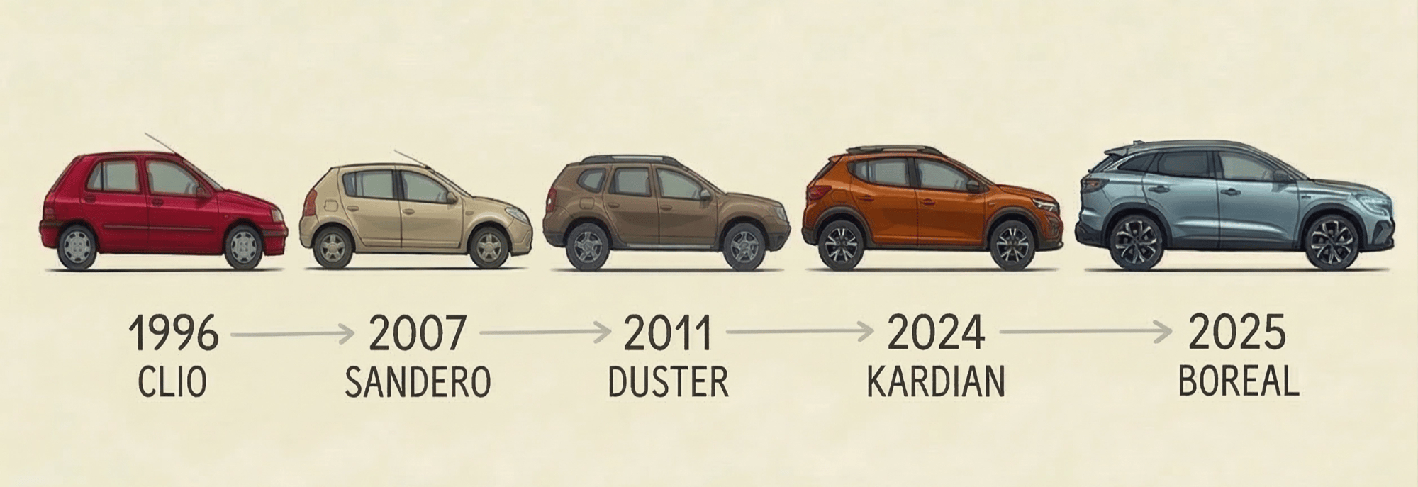 Quem conseguiu o prêmio 2x consecutivas foi a Renault, com o Kardian em 2025 e o Renault Boreal em 2026. A marca, que está no Brasil desde 98, lançou vários ícones como o Clio e o Duster… até chegar nessa novidade.