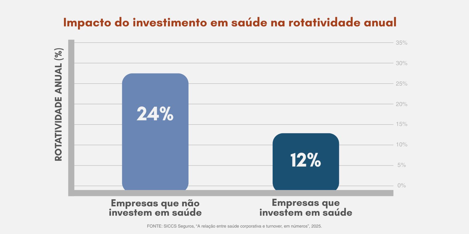 Isso significa que empresas que investem na saúde do colaborador podem ter até metade da rotatividade em comparação às que não priorizam esse cuidado.