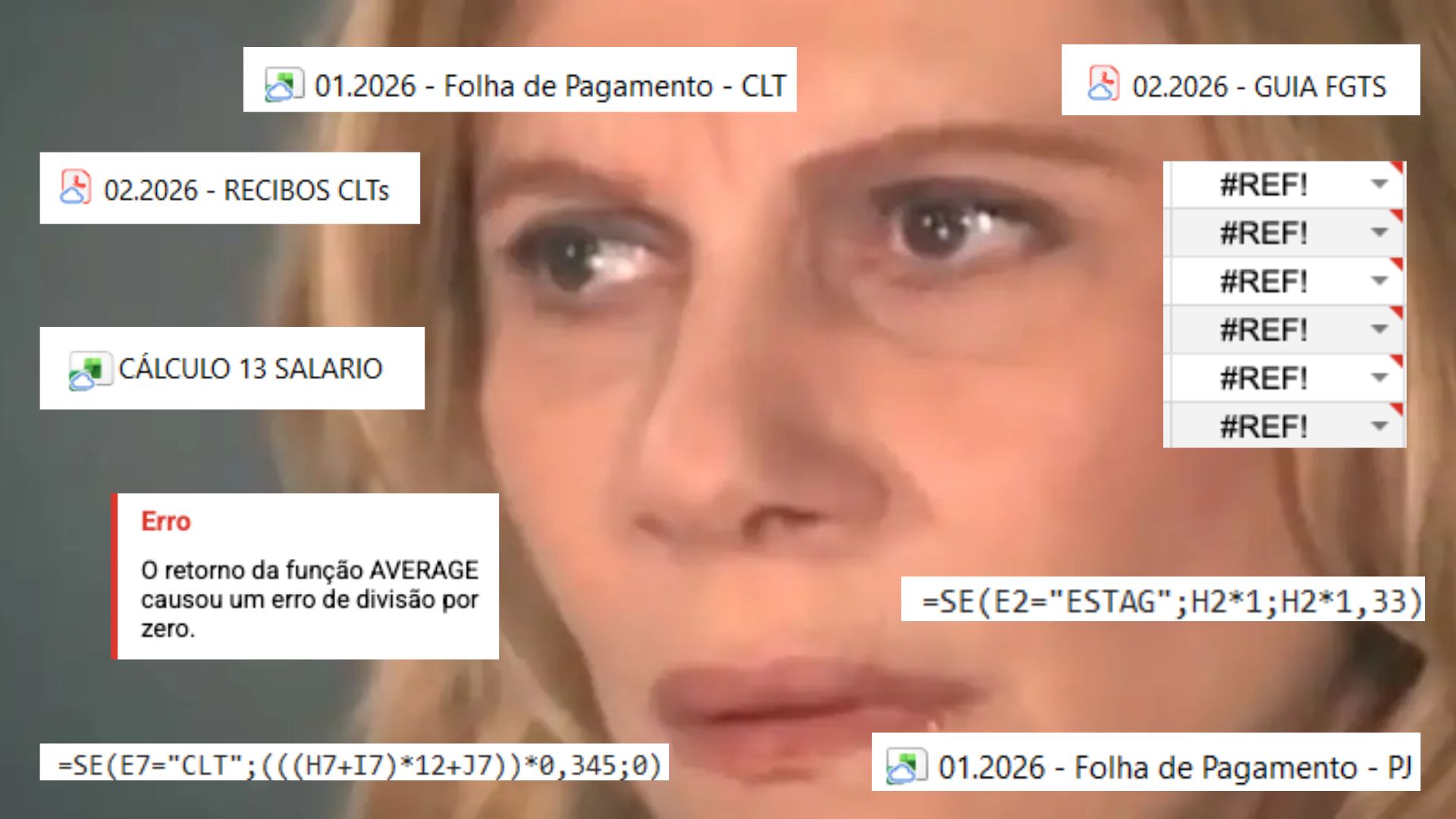 Se a sua cabeça fica assim todo fim de mês no RH, toca aqui 🤚. CLT, PJ, estagiário… cada um com uma regra, um cálculo e uma chance nova de dar errado. risos.